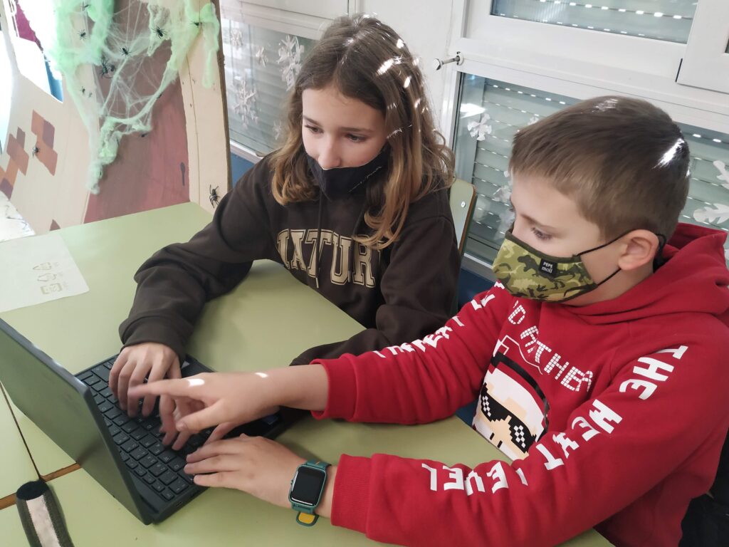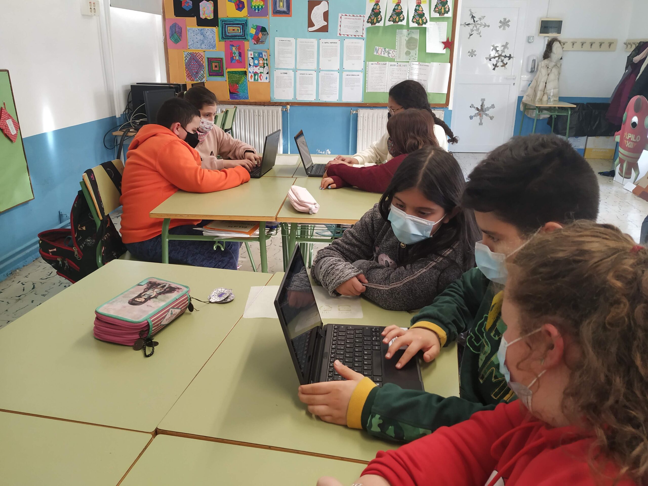 Alumnat de cicle superior redactant notícies. Fotos realitzades per l’alumnat CS.