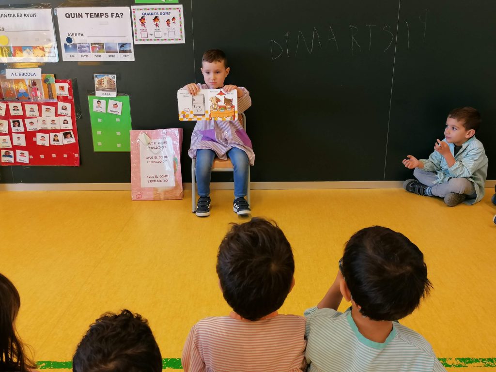 El Marc va explicar els seus companys i companyes de classe el conte “El cuc de colors”.