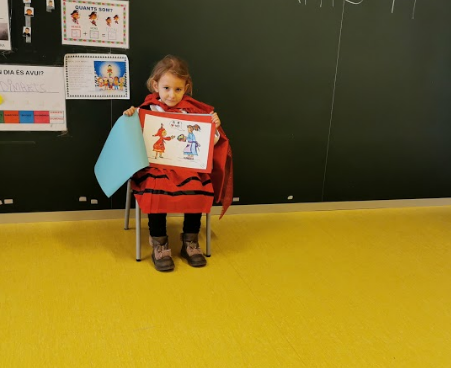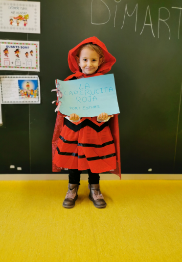 Abans de començar les vacances l‘Esther ens va explicar el conte de la Caputxeta Vermella. Però aquest conte no era un conte normal i corrent, sinó un de molt especial. I per què era especial us preguntareu? Doncs perquè el va fer ella mateixa! L’Esther va pintar totes les imatges del seu conte i després les va enganxar en una cartolina per fer-ho encara més bonic.