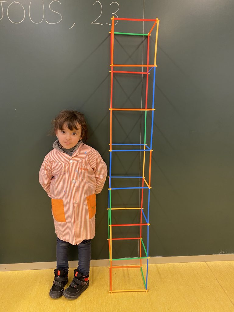 Molt contents/es i jugant, hem cronstruït una torres de cubs amb un joc que ens van dur a l’escola els Reis Mags. Ens hem mesurat contant els cubs que ocupen la nostra alçada, dels peus fins al cap. Ens ho hem passat d’allò més bé veient com molts de nosaltres coincidim amb 5 o 6 cubs.