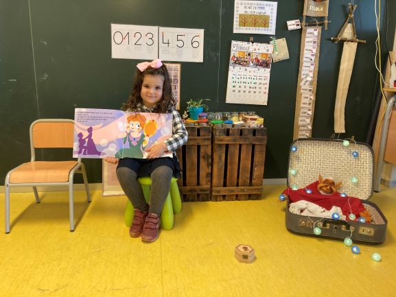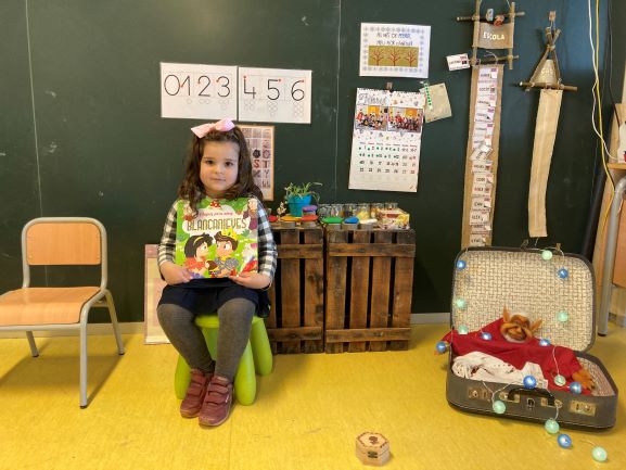 Aquesta setmana ha estat el torn de la Maria, ella molt contenta i amb moltes ganes ens ha explicat el conte de la “Blancanieves”, ens ha portat un conte preciós, amb unes il·lustracions molt boniques que fins i tot tenien purpurina i brillaven.