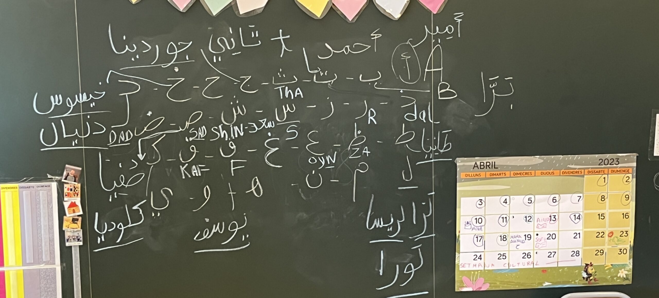 Després de crear el nostre abecedari d’aula, vam descobrir que al món existeixen altres tipus d’abecedaris, per aquest motiu la mare del L’Ahmed de i4 A ens va venir a explicar com és l’abecedari àrab!!!