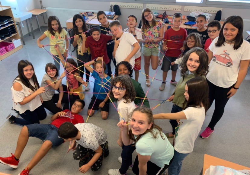 Els nens i nenes de cinquè hem començat el curs amb una dinàmica de coneixènça que s’anomena “la teranyina”.