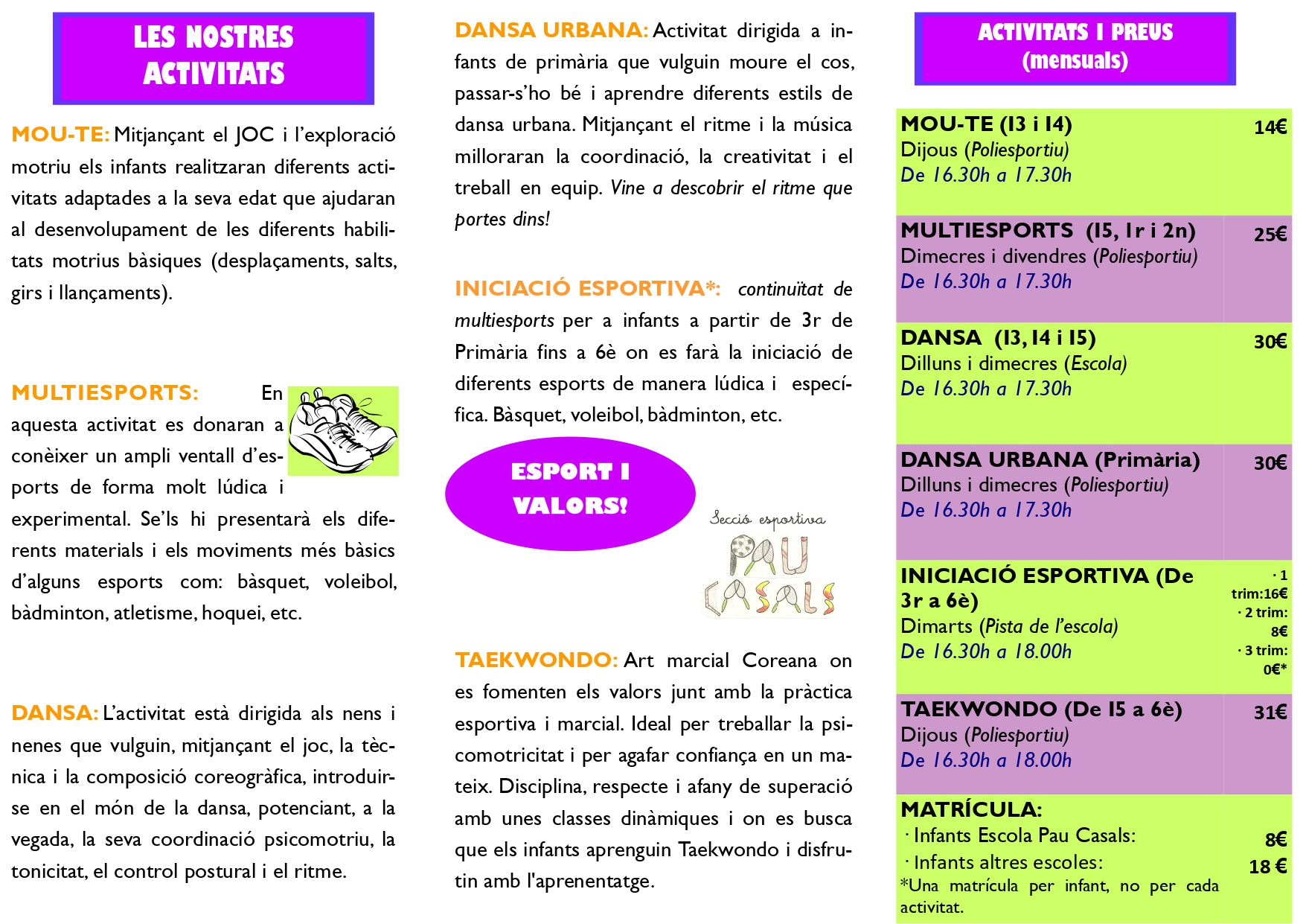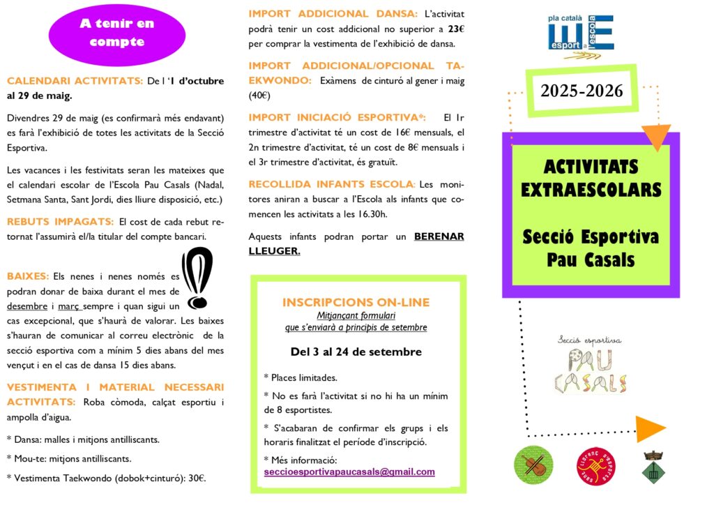 Ja tenim a punt les activitats extraescolars del curs 2025-2026!