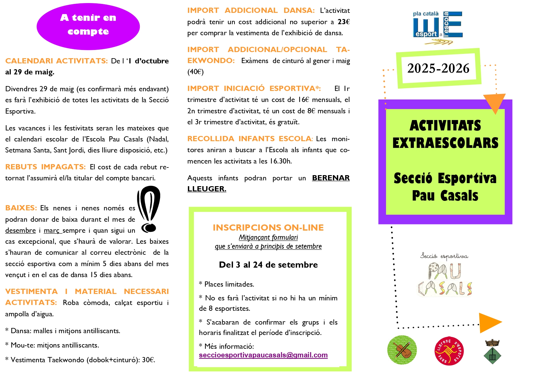 📍 Més informació: seccioesportivapaucasals@gmail.com