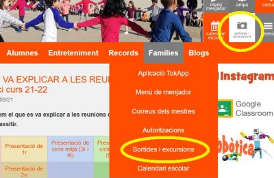Sortides i excursions curs 21-22Per pfangles / 19 d'octubre de 2021 / Portada Trobareu les sortides i excursions d’aquest curs a l’enllaç permanent tal i com us indica aquesta imatge.