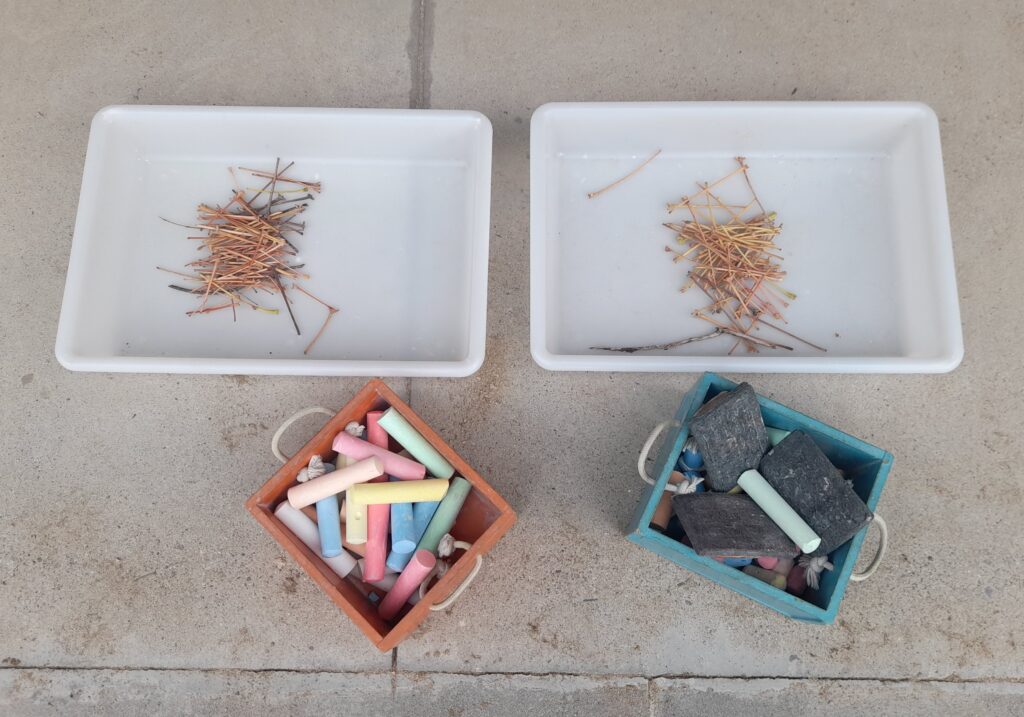 Hem sortit al pati on hem presentant diferents propostes. Els nens i les nenes han experimentat fent