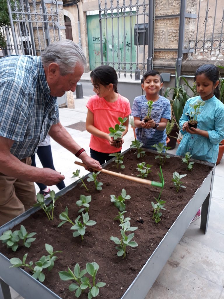 Ja hem començat a plantar les primeres plantetes a l’hort, amb l’ajuda del Miquel, voluntari del associació de gent gran”L’esplai de Reus”.