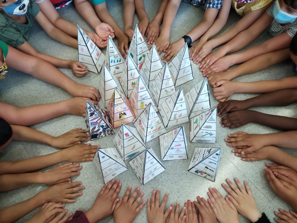 Amb aquest projecte, han après a distingir els aliments saludables dels que no ho són tant, la diferència entre l’origen dels aliments o quants àpats és recomanable fer durant el dia. Seguint amb aquest projecte han creat una piràmide dels aliments en 3D, que han fet ells manualment, pintat i decorat per donar un toc artístic. Cadascú ha creat la seva pròpia piràmide per dur-la a casa, i així poder explicar als seus familiars, quins aliments són els que no poden faltar en la nostra alimentació.