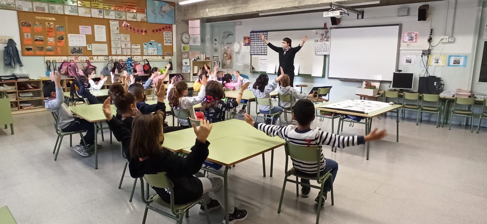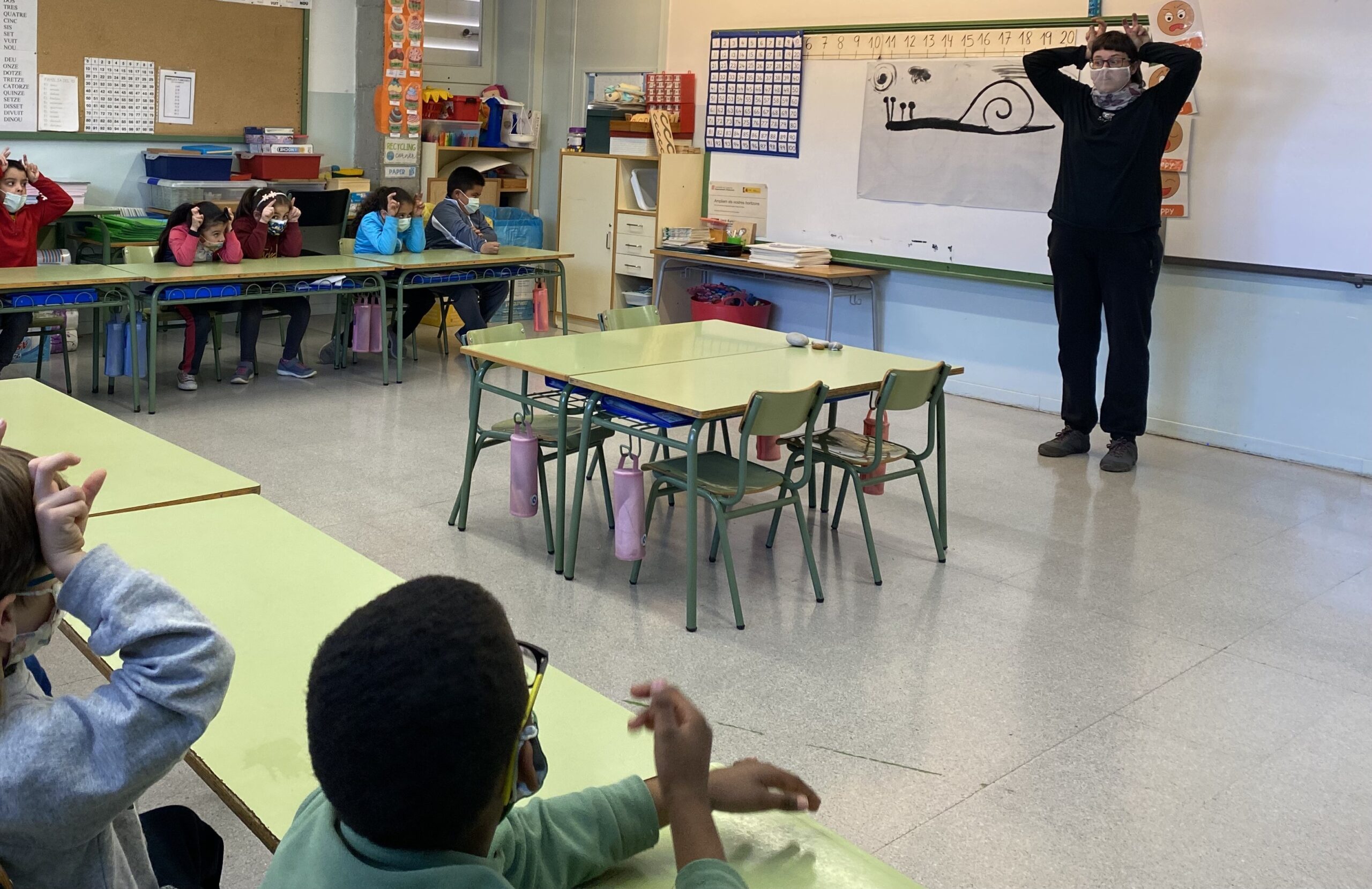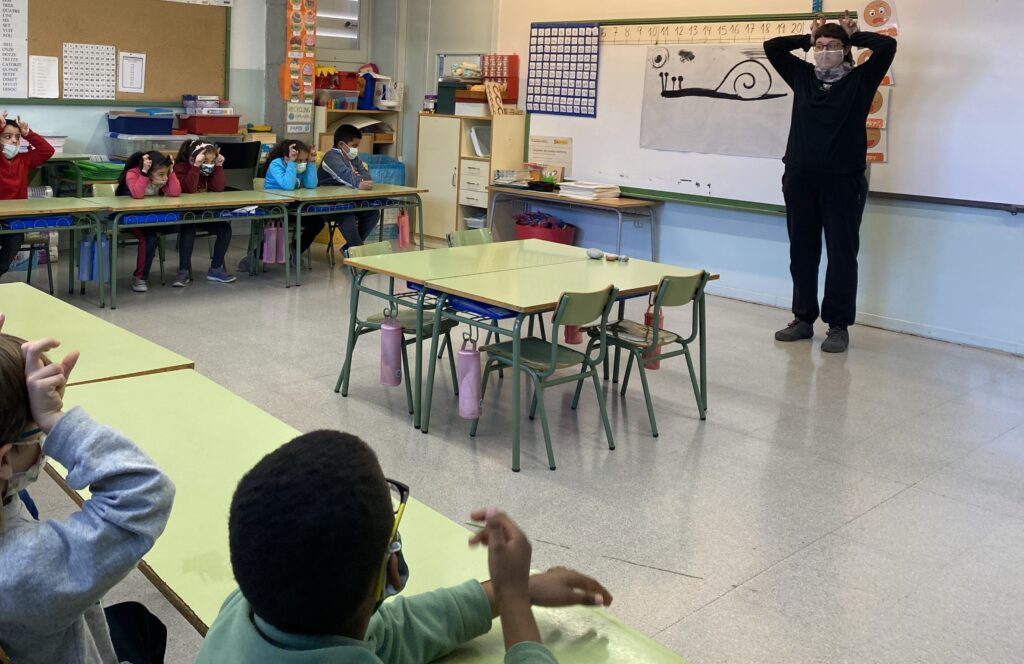 Hem pogut gaudir a l’escola durant una bona estona aprenent cançons i contes que ens han explicat i hem participat comptant, cantant i contant.