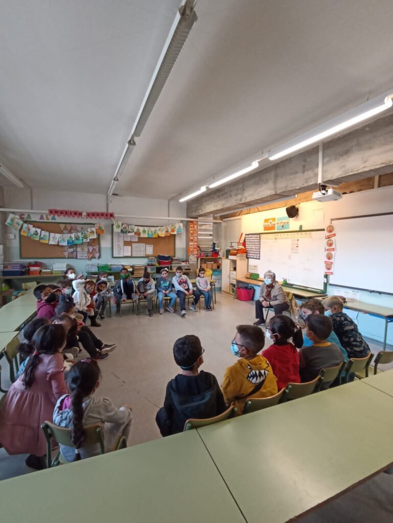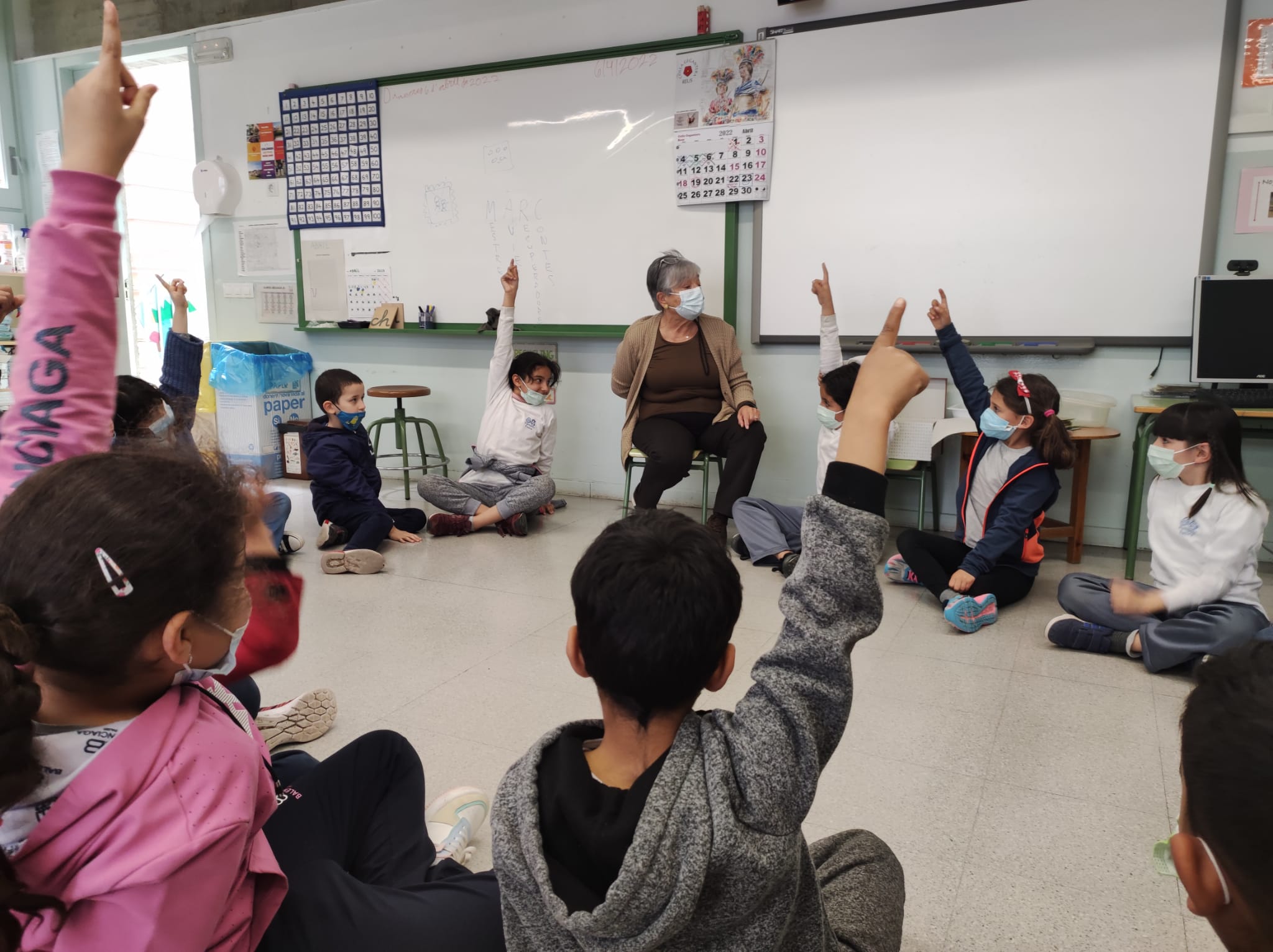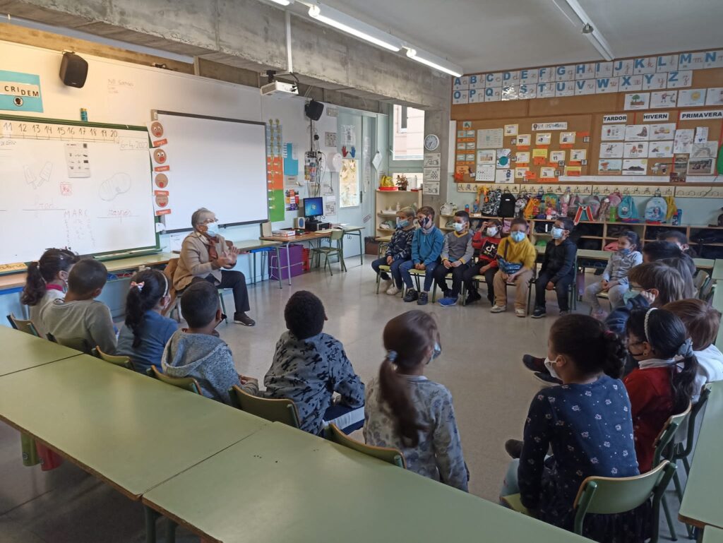 Aquesta tarda els nens i les nenes de primer i segon nivell hem tingut el plaer de rebre la visita de la Sra. Josepa, una mestra jubilada que no ha deixat mai de treballar, ja que actualment pertany a un col·lectiu de Mestres que com ella, encara mantenen viva la il·lusió per ensenyar i per transmetre coneixements a les futures generacions.