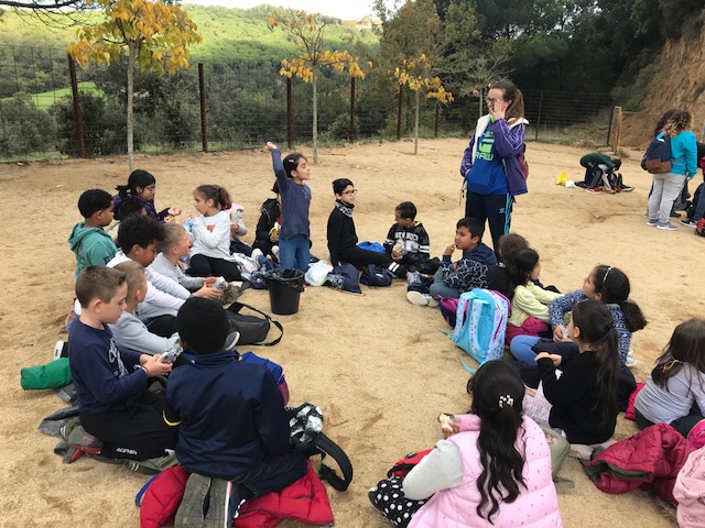 Quan vam arribar ens vam trobar amb totes les classes i vam esmorzar tots junts. Després ens vam preparar per anar a fer una excusió per la muntanya, allà vam veure la Castanyera i després de saludar-la vam anar a descobrir la muntanya. El Toni que era el nostre guia ens va explicar moltes coses: des de com orientar-nos a la muntanya i tots els tipus d’arbres que anavem veient. Al final vam construir una cavanna amb branques i branquillons.