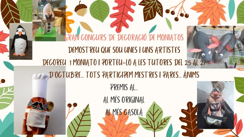 El proper dilluns 4 d’octubre comencen les activitats extraescolars al centre. Les activitats que de moment tiren endavant són: Piscina per tothom els dilluns Multiesport per educació infantil els dimarts i dijous Futbol per cicle inicial els dilluns Patinatge per cicle inicial els dimarts Patinatge per cicles mitjà o superior els dimecres Informàtica per tota