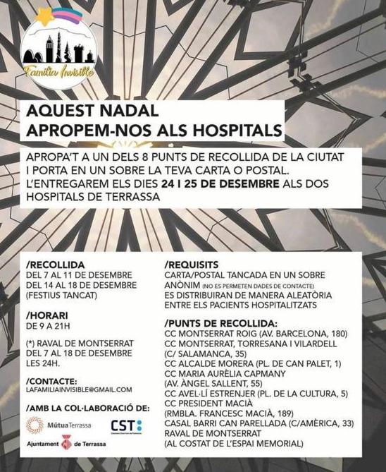 Els nens i nenes de l’escola escriuran cartes o faran postals per a totes aquelles persones que no puguin passar les festes a casa i les hauran de passar als hospitals de la ciutat. Els dies 24 i 25 de desembre els hi faran arribar.