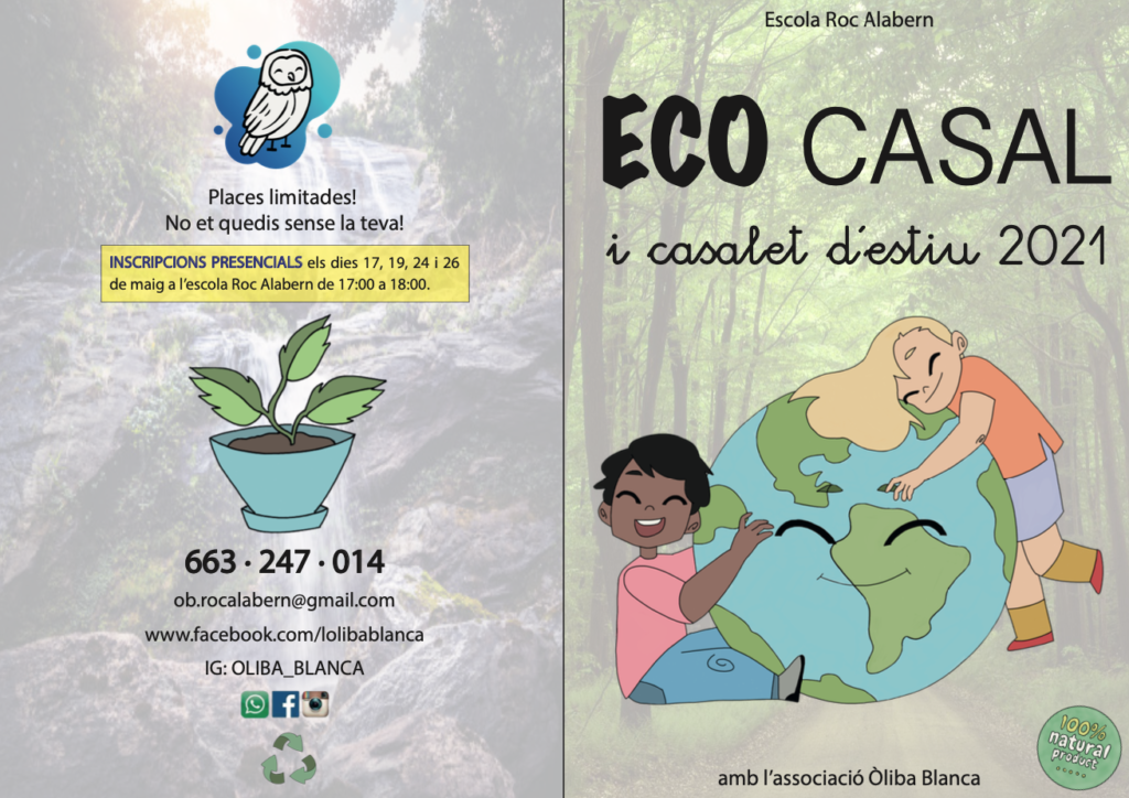 Famílies! Sembla mentida però ja estem al tercer trimestre i passa ràpid. Ja sabeu què faran els vostres fills i filles aquest estiu?? Clar que sí!!! Apuntar-se al Casal del Roc Alabern!!!! Animeu-vos! Aquest curs ECO CASAL!!!!