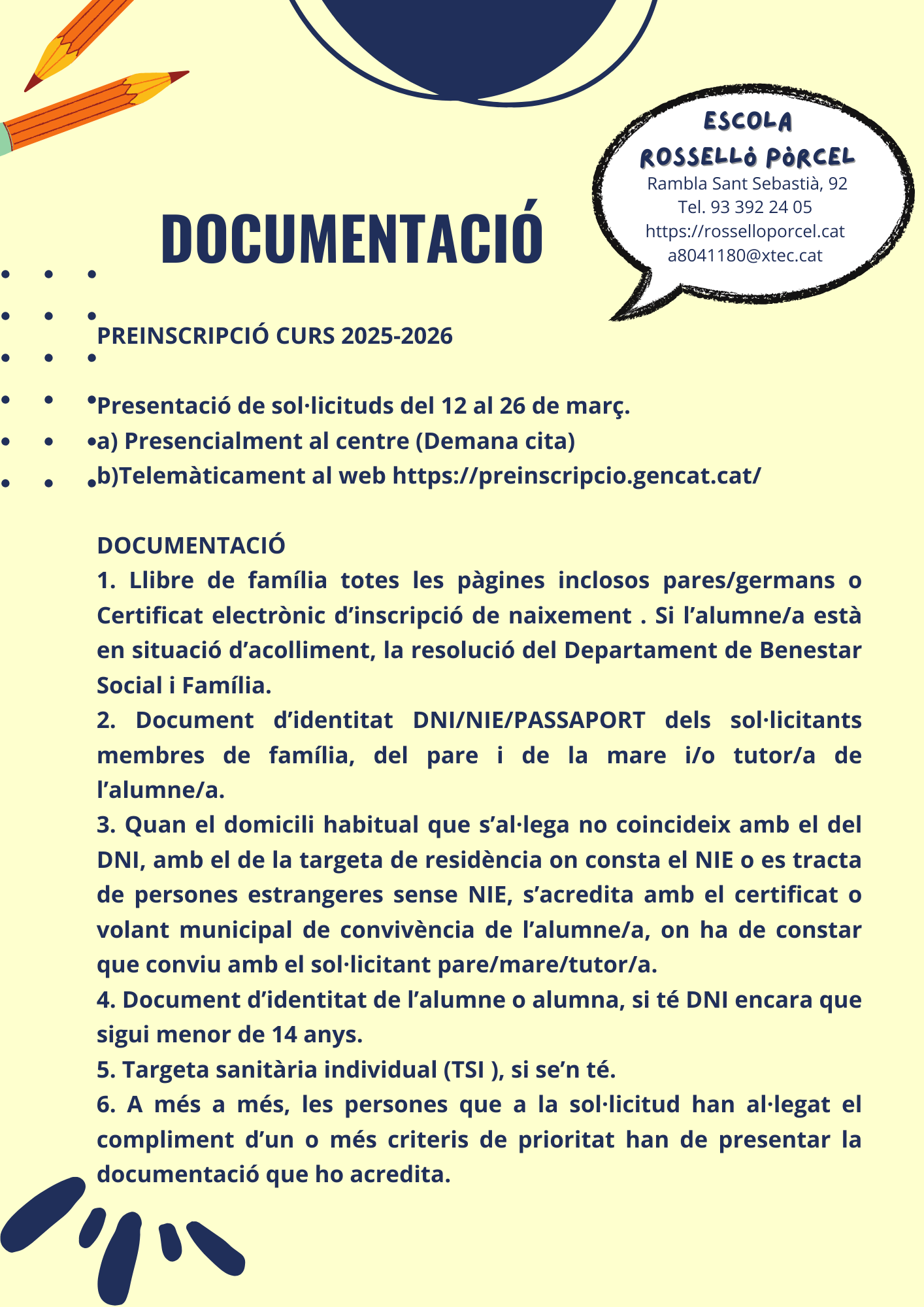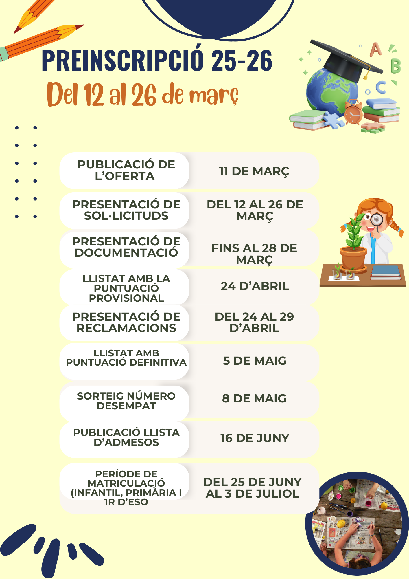 Benvolgudes famílies, us deixem el calendari de la preinscripció del curs 2025-2026.