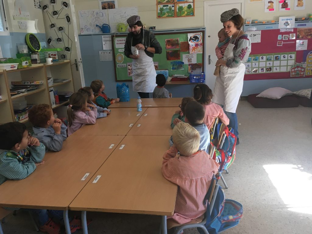 Dins de les activitats del foment de l’expressió oral que ens hem proposat a Infantil, els pares i mares estan convidats a portar-nos experiments a l’aula. Avui han vingut els pares del Quim per demanar-nos ajuda pel Senyor Vinagre, que estava trist per no tenir cabell.