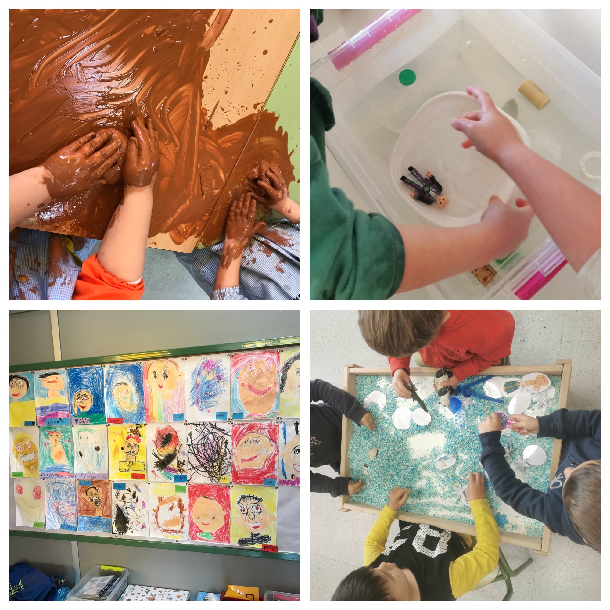 Els dilluns i els divendres a la tarda els nens i nenes d’educació infantil fem tallers. El dilluns l’aula verda fa taller d’experimentació i l’aula taronja taller artístic, i el divendres, a l’inrevés.