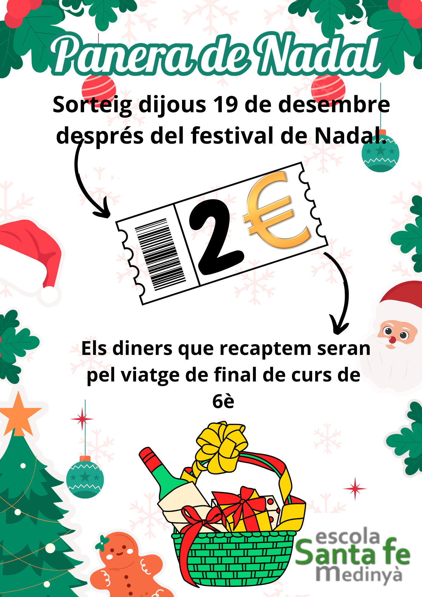 L’alumat de sisè de primària hem preparat una panera de Nadal per recaptar diners per la sortida de final de curs. La sortejarem el dijous dia 19 de desembre quan acabi el festival de Nadal.
