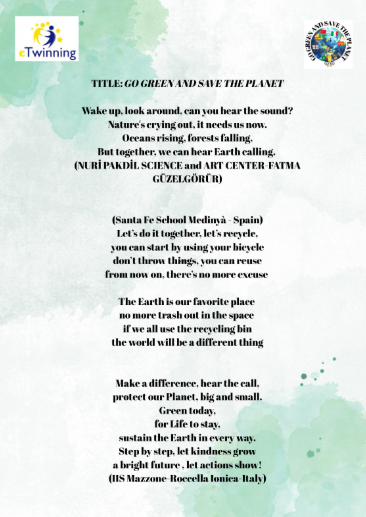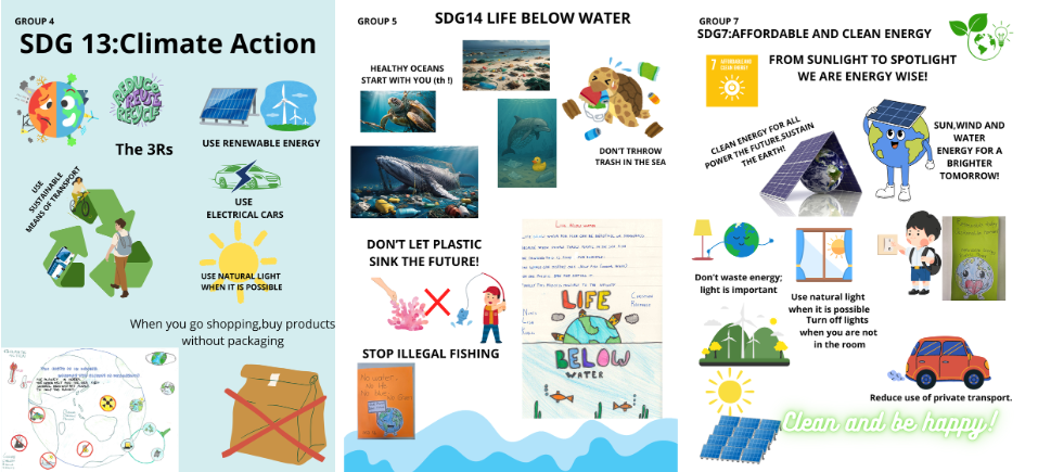 As we have been informing you throughout the school year, Cicle Mitjà students are taking part in the eTwinning project “Go Green and Save the Planet”, in which schools from various European countries are participating. Among the activities we have carried out, we have worked in collaborative groups made up of students from the different participating countries, and we have created posters together focusing on the Sustainable Development Goals (SDGs) related to our project.