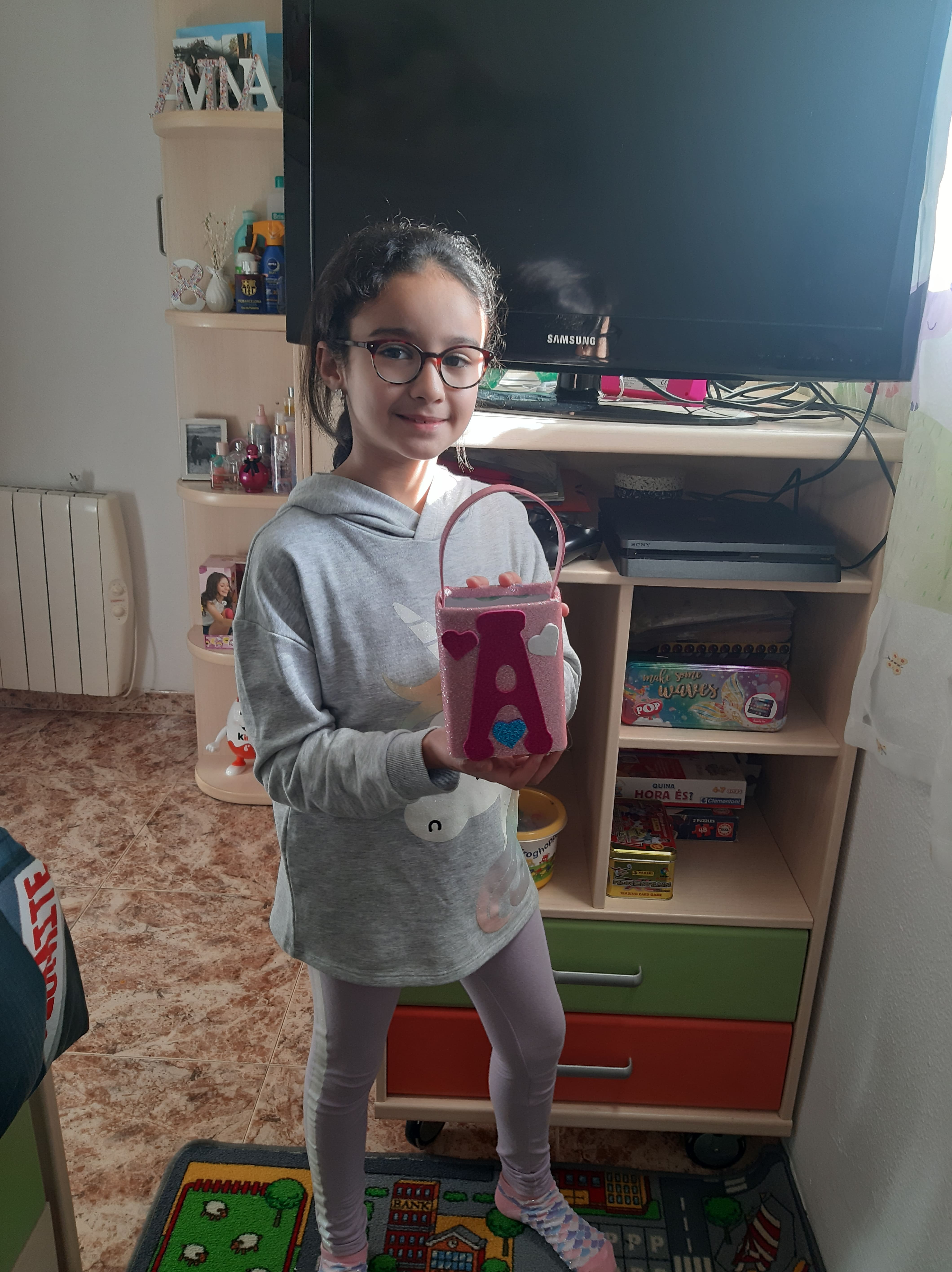 L’Amina ha fet aquest portallapis amb un cartró de llet i goma eva. Molt bona idea Amina!