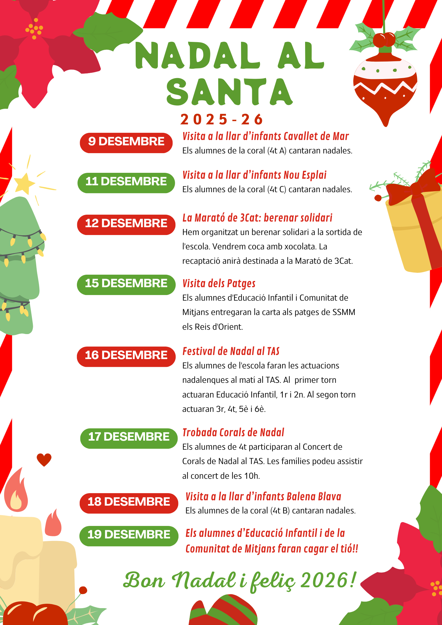 Adjuntem el programa d’activitats que portarem a terme per tal de celebrar el Nadal a l’escola.