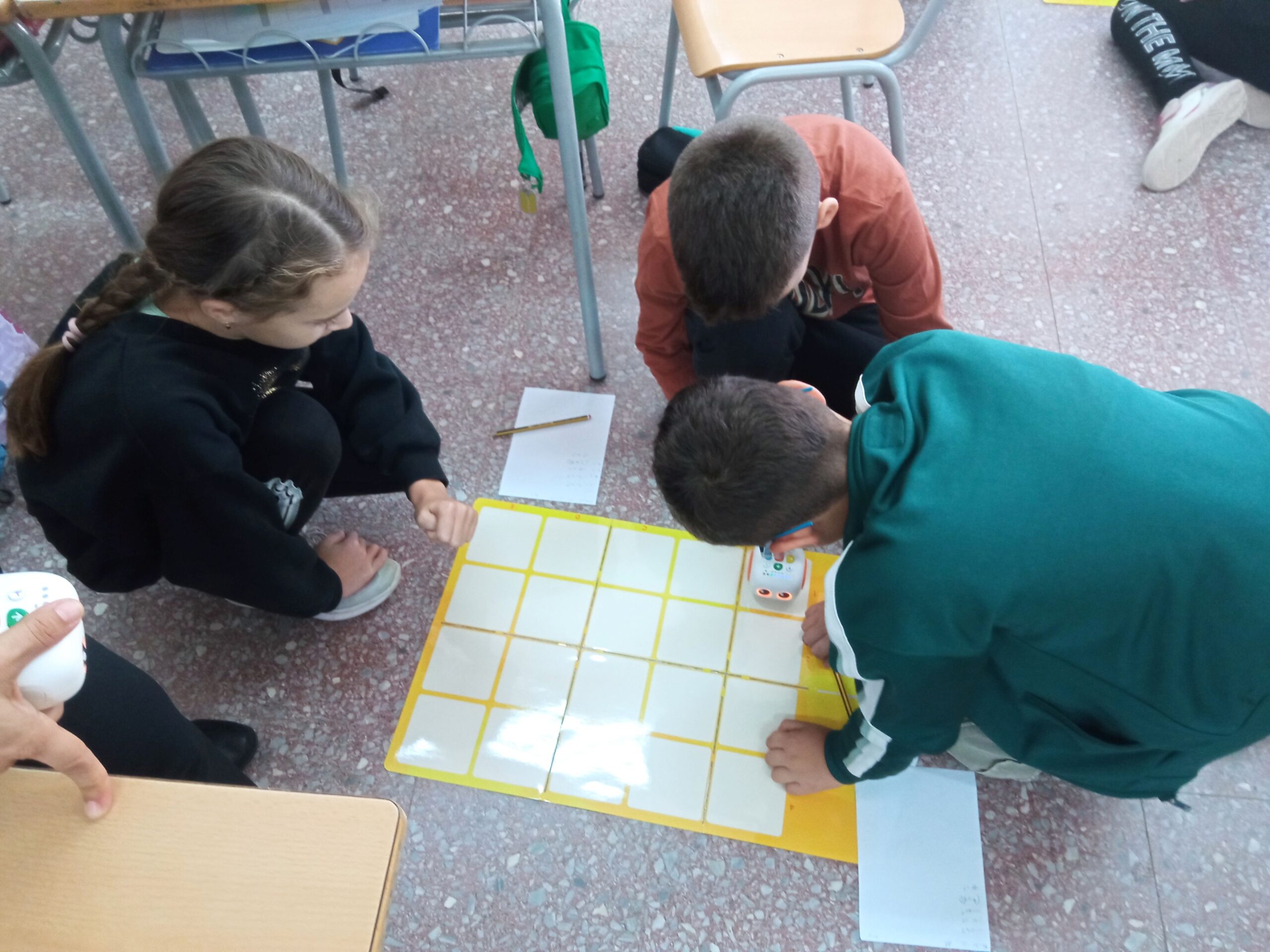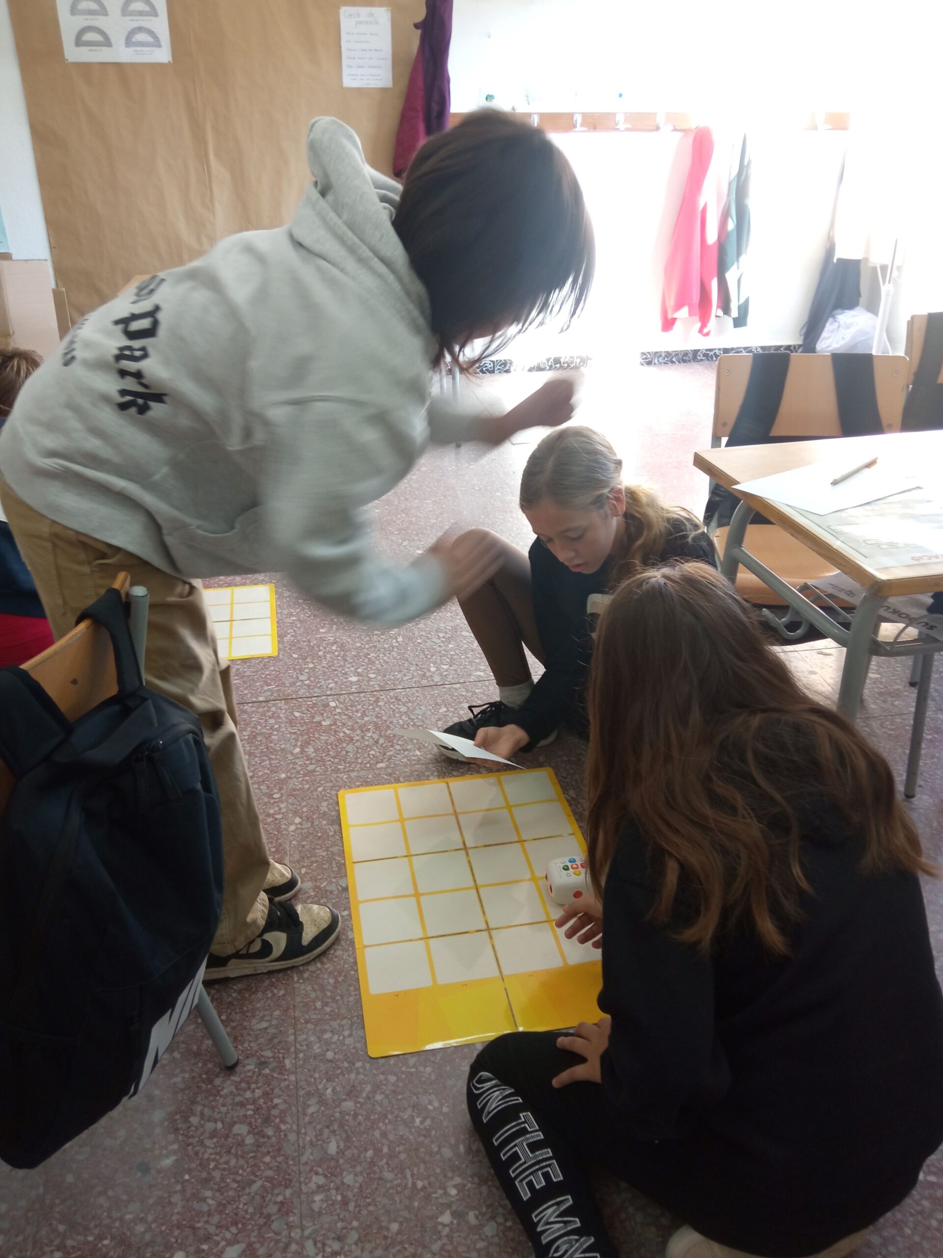 Enguany treballem el pensament computacional. El dia 15 d’octubre, vam descobrir com donar instruccions a un robot per tal que realitzin una trajectòria determinada. No va ser fàcil! Un cop ho vam tenir per escrit, vam programar el robot i ens vam adonar que ens havíem equivocat… Amb unes quantes correccions més ho hem aconseguit! Estem aprenent que els robots no són per jugar, sinó per aprendre a fer servir el pensament computacional de manera lúdica.