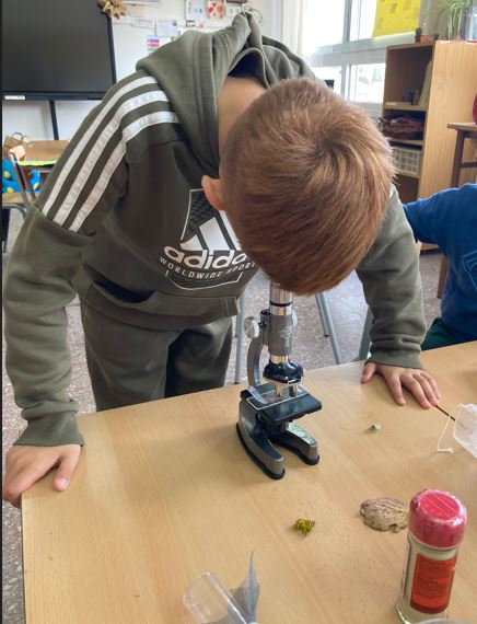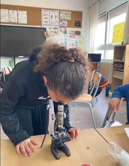 A tercer ens agrada experimentar i és per això, que cada quinze dies duem a terme un experiment. Fins ara n’hem fet sobre els colors, els que tenen a veure amb les particularitats de l’aigua i estem esperant poder fer els experiments que tenen a veure amb els volcans. Estem impacients! Vam estar molt contents quan en Mikel va portar el seu microscopi. Vam poder observar totes aquelles coses que no podem veure a simple vista. Aprofitant això, també vam treure les nostres lupes i també el nostre microscopi digital. Tots els nens i nenes, van poder observar diferents materials, objectes que van recollir al pati o a l’hort. Ens ho vam passar súper bé i vam aprendre moltes coses.