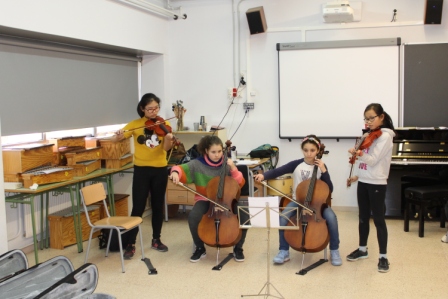 Els alumnes de 4t i 5è han fet un exercici de composició en el que han hagut d’escriure les seves idees musicals, provar, tocar, experimentar,canviar i ficar-se d’acord !! Després de tres setmanes de treball, cada grup va fer la seva posada en escena davant mestres i companys/es!