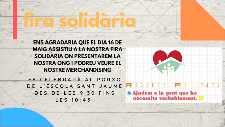 Finalment, us deixem les invitacions que hem dissenyat amb el programa “canva”  per si voleu assistir a la nostra FIRA SOLIDÀRIA que tindrà lloc el dia 16 de maig de 9:30 a les 10:45 hores, a la nostra escola!