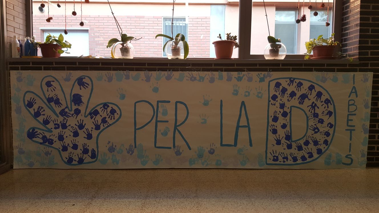 Avui dia 14 de novembre és el Dia Mundial de la Diabetis (DMD). Des de l’escola, els nens i nenes d’Educació Infantil, hem volgut donar suport a les persones afectades d’aquesta enfermetat, entre les quals es troben alguns companys i companyes del centre. Nosaltres ho hem volgut reflectir amb un mural fet amb el color blau que representa a aquest dia.