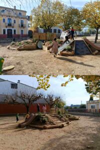Aquesta estructura consta de dos turons i diferents elements, com un tobogan, una rampa d’escalada, una corda per grimpar, entre d’altres.