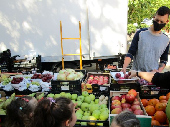 Aprofitant que els dilluns hi ha mercat a la plaça, les nenes i nens d’Educació Infantil hi hem anat a comprar diversos tipus de fruites.