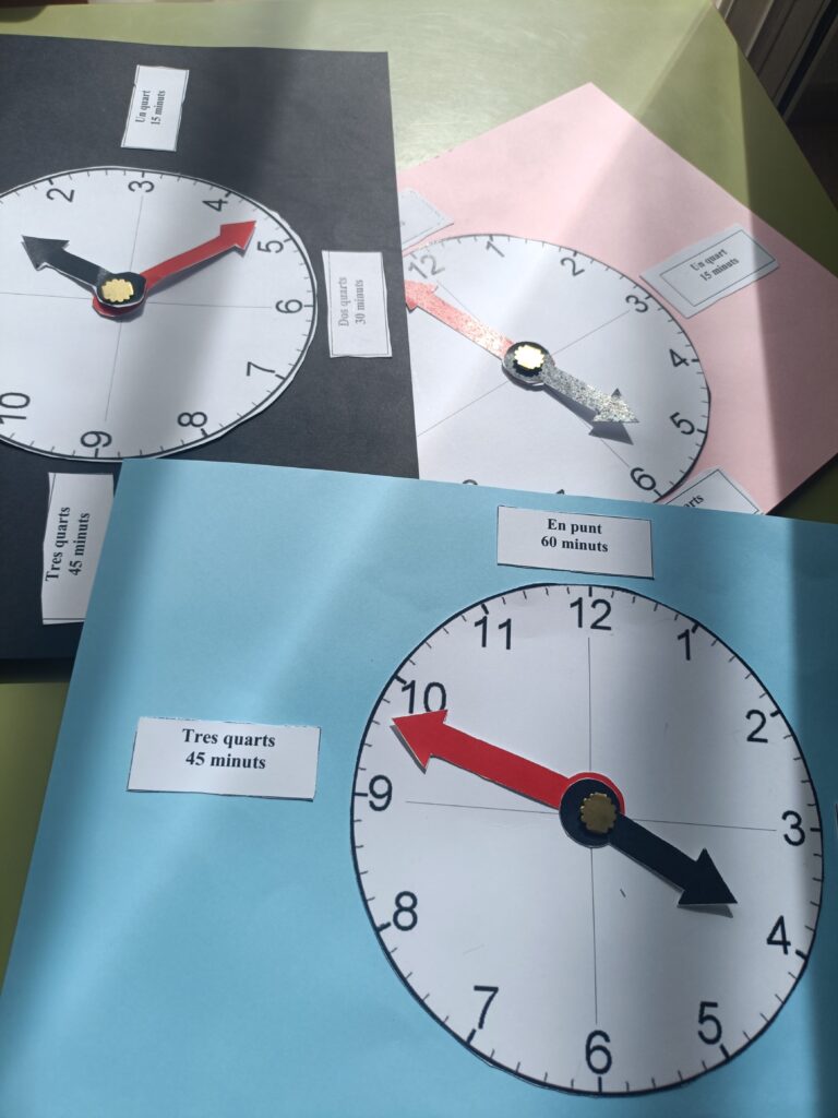 A primer hem acabat aquest segon trimestre treballant amb el rellotge a les sessions de matemàtiques. Hem après a dir les hores en català i hem fet moltes activitats i jocs relacionats amb les hores i el rellotge. Si voleu veure com hem treballat cliqueu aquí.