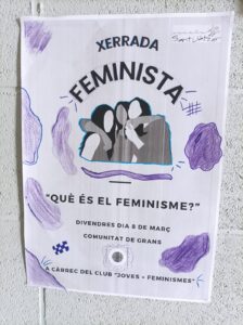 Arriba el 8 de març i presenten a la comunitat educativa el naixement d’aquest club a l’entrada de l’escola, el qual anomenen “Joves + feministes”. Un dia molt especial per la inauguració d’un club que reivindica la igualtat de gènere a l’escola i a la nostra societat. Durant el matí, presenten i conviden a infants de la comunitat de grans a formar part del club i celebren la bona rebuda i l’èxit.