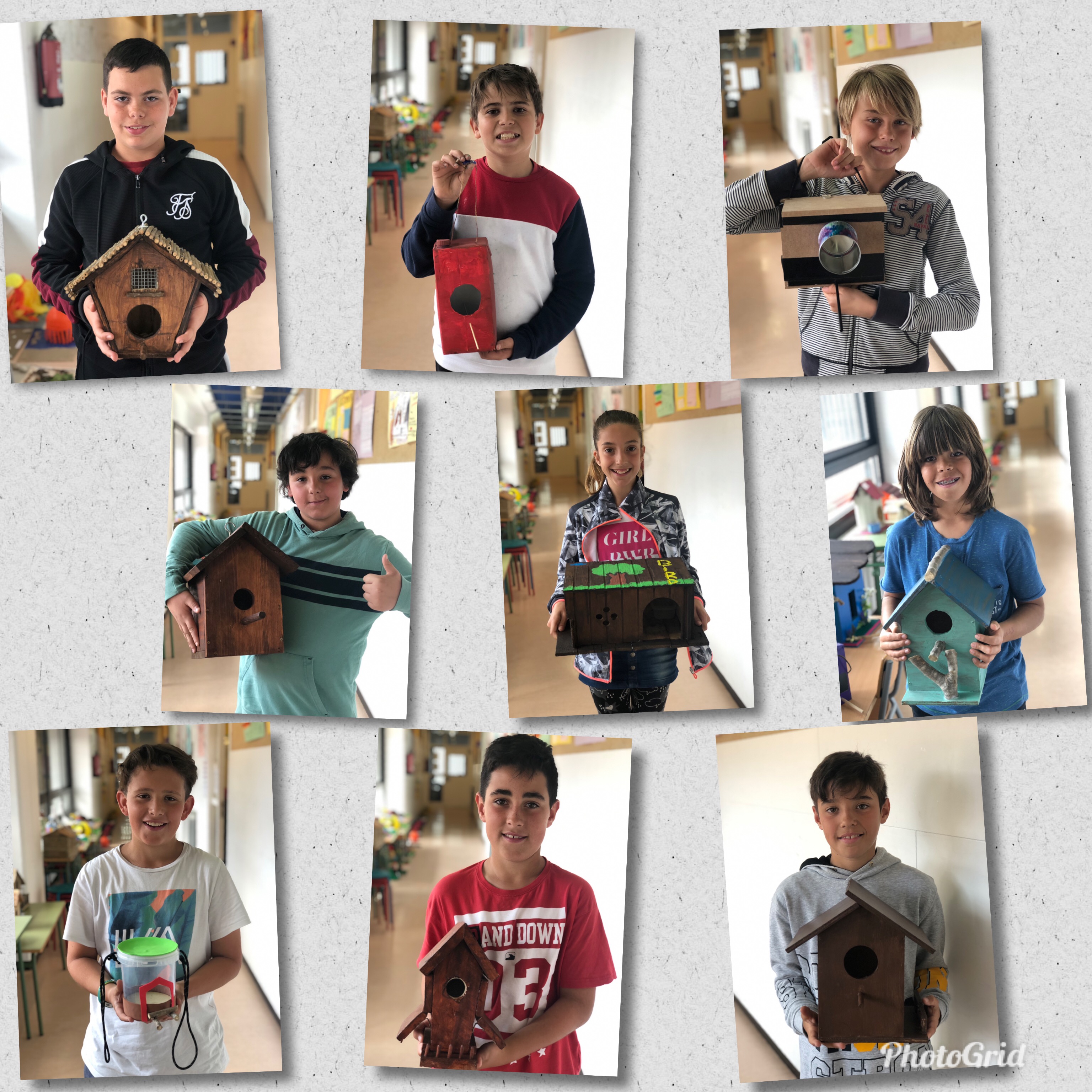 Els de 5è hem estat estudiant les aus. Com a treball final hem fet casetes i menjadores pels ocells de la zona. Després d’exposar-les a l’escola uns dies, les penjarem a l’exterior per a que els ocells les puguin fer servir.