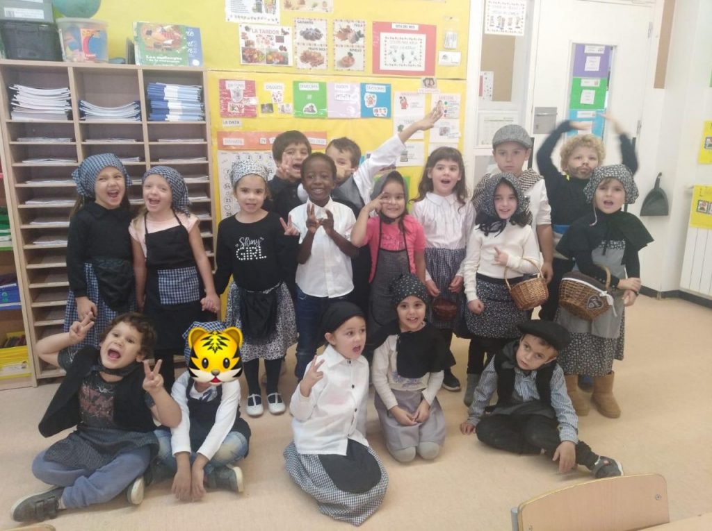 Per finalitzar la castanyada, els de p5 ens hem disfressat de castanyers/es i hem sortit al pati a menjar castanyes i a ballar al ritme de la tardor.