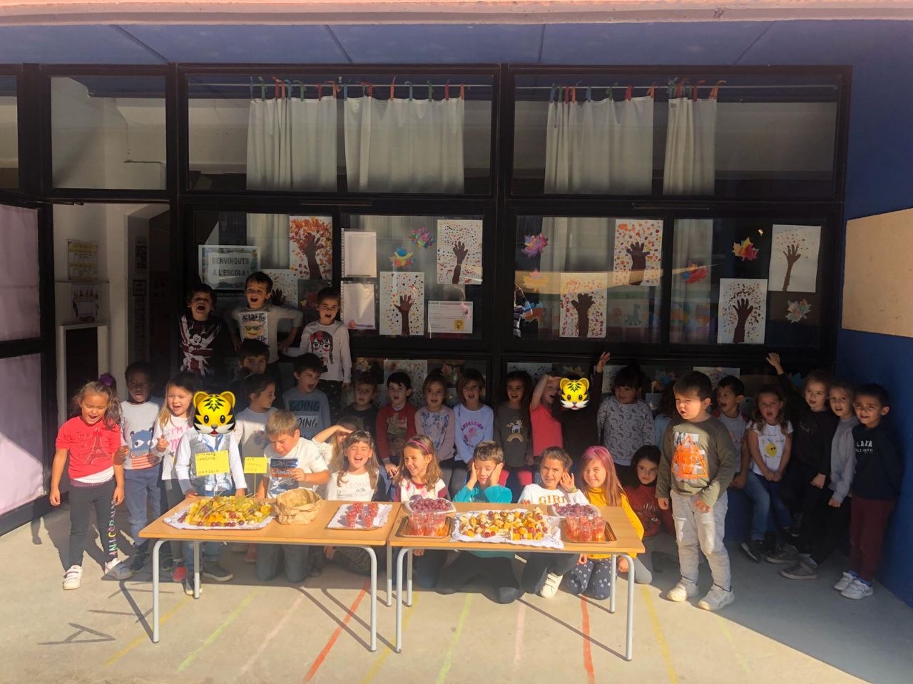 Aquesta setmana de castanyada els taurons i els unicorns de p5 hem preparat uns panellets deliciosos. A més, hem fet un tastet de fruites de la tardor amb gotets de magrana i pintxos de raïm, pera i taronja.