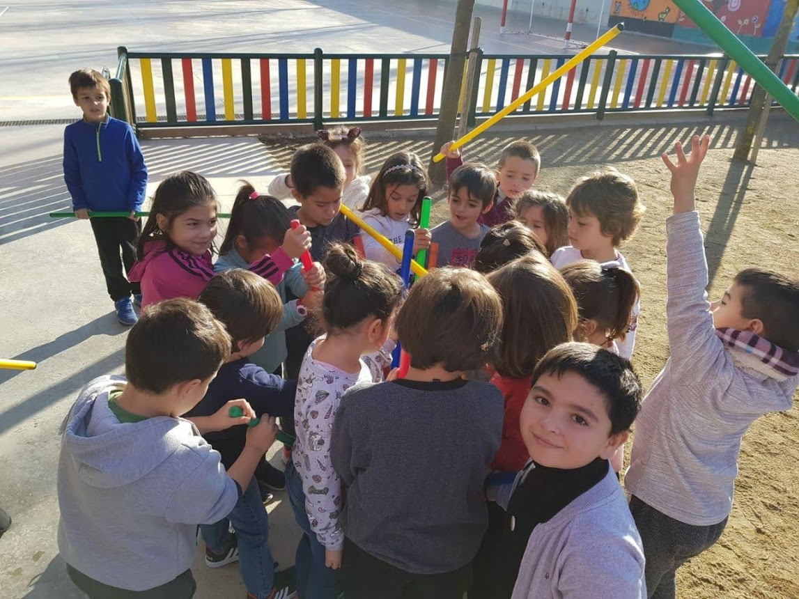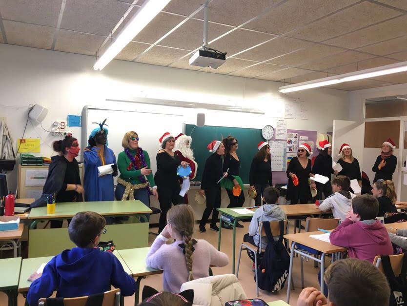 Els més grans de l’escola hem anat a visitar als més petits. Els hem dedicat la cançó i el poema que havíem preparat pel festival d’hivern i els petits ens han dedicat les seves. Al acabar, hem pogut compartir una estona de joc.