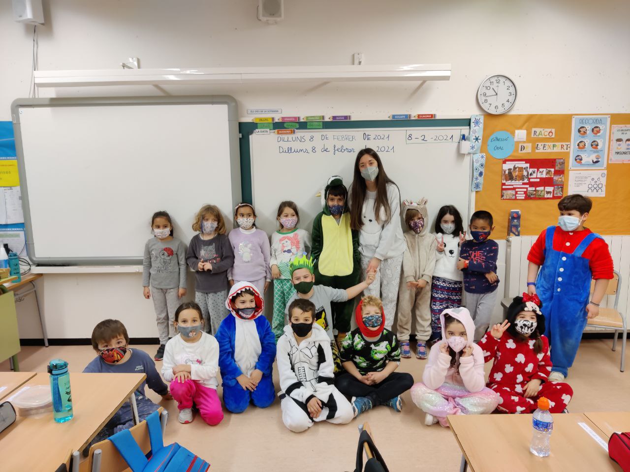 La reina carnestoltes ens va dir que el dilluns haviem de venir amb el pijama i ho hem fet de molt bona gana!!