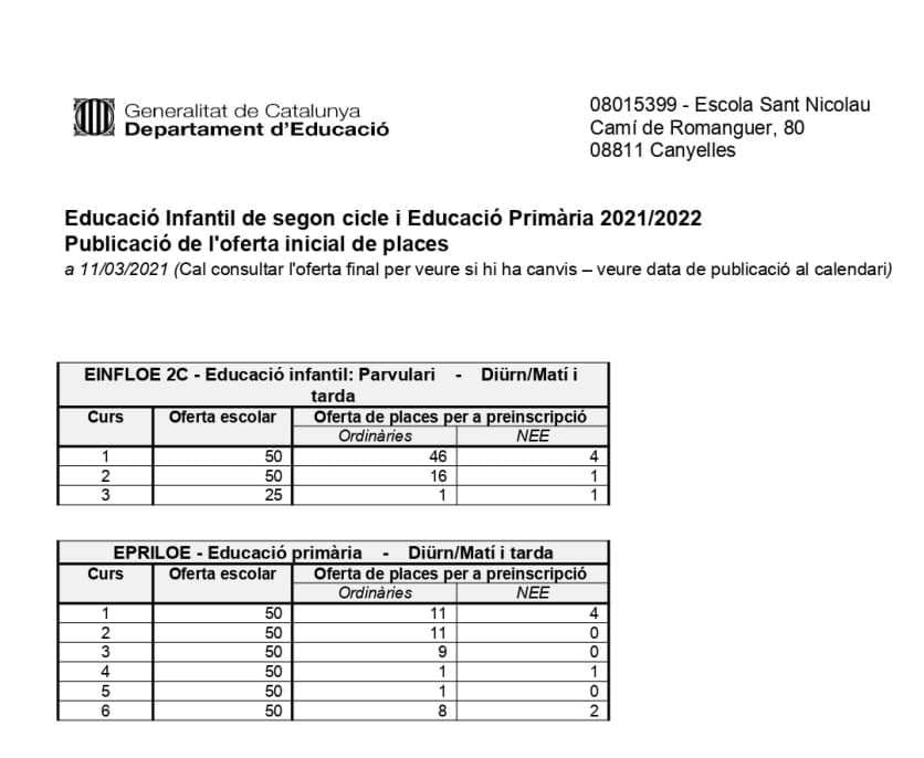 Benvolgudes famílies, ja teniu disponible tota la informació per realitzar la preinscripció I matricula del curs 2021-2022.