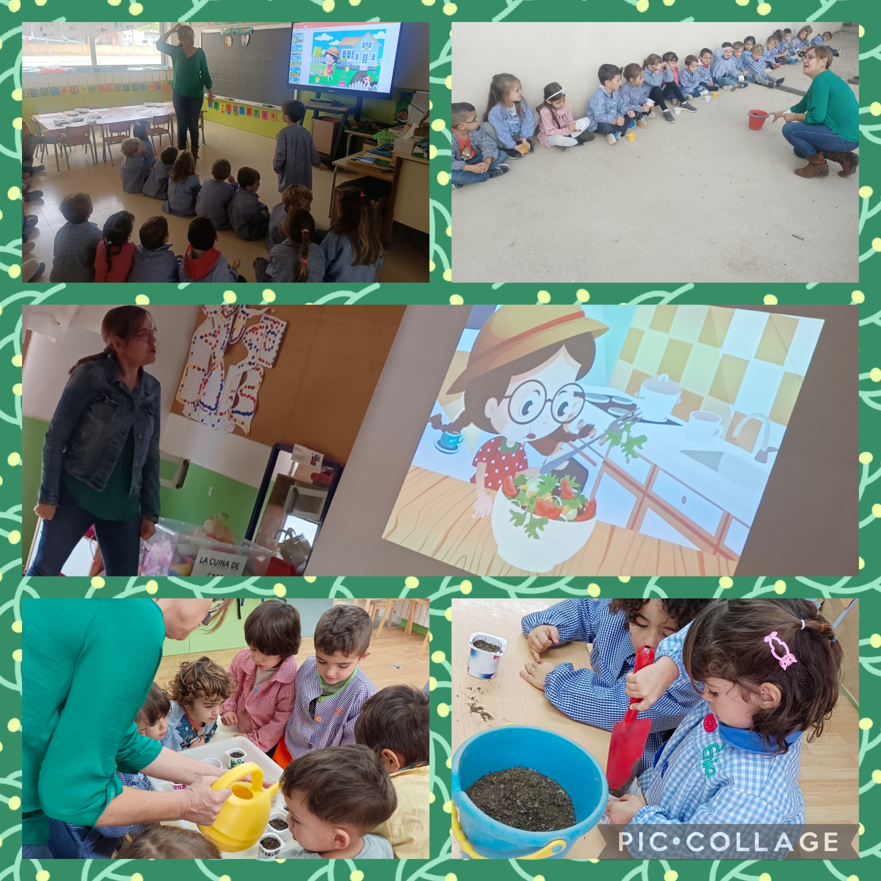 Dijous, les nenes i els nens d’infantil, vam rebre a l’Anna, de la Mancomunitat. Ens va venir a fer una activitat d’educació ambiental: “L’hort de la Martina“. Primer ens va explicar la història de l’hort de la Martina i després ens va ensenyar a plantar verdures i a tenir-ne cura. Va compartir amb nosaltres un munt de coneixements i consells per a poder crear el nostre hort i contribuir a la cura del nostre planeta.