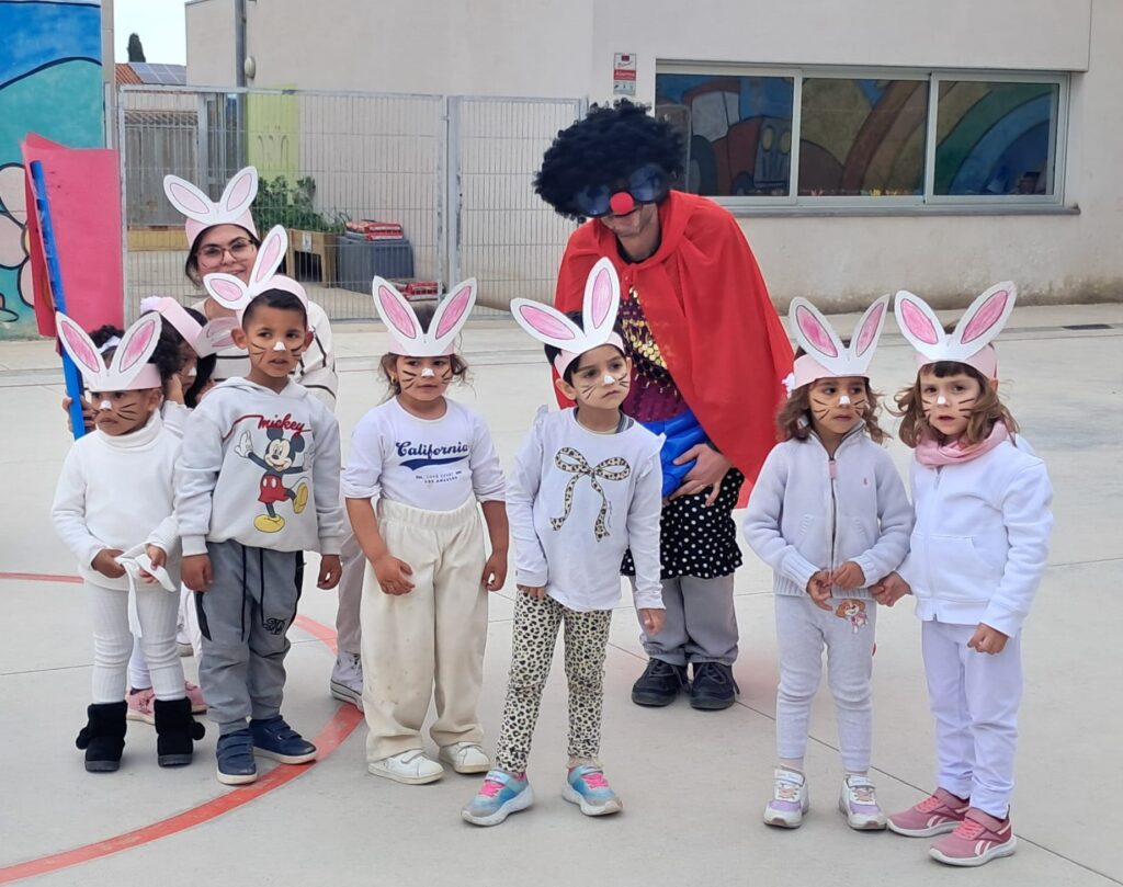 El passat divendres 20 de febrer vam celebrar la Festa de Carnaval. Els infants hi van participar amb gran il·lusió, disfressant-se d’acord amb la temàtica del nom de la seva aula i desfilant per la pista de la zona d’esbarjo. Per cloure la celebració, van compartir un berenar de pa amb xocolata.