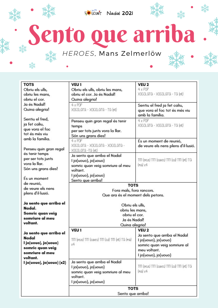 2. La lletra que nosaltres cantarem amb les explicacions de la percussió corporal d’acompanyament (recordeu que us toca fer la Veu 1 o la Veu 2)
