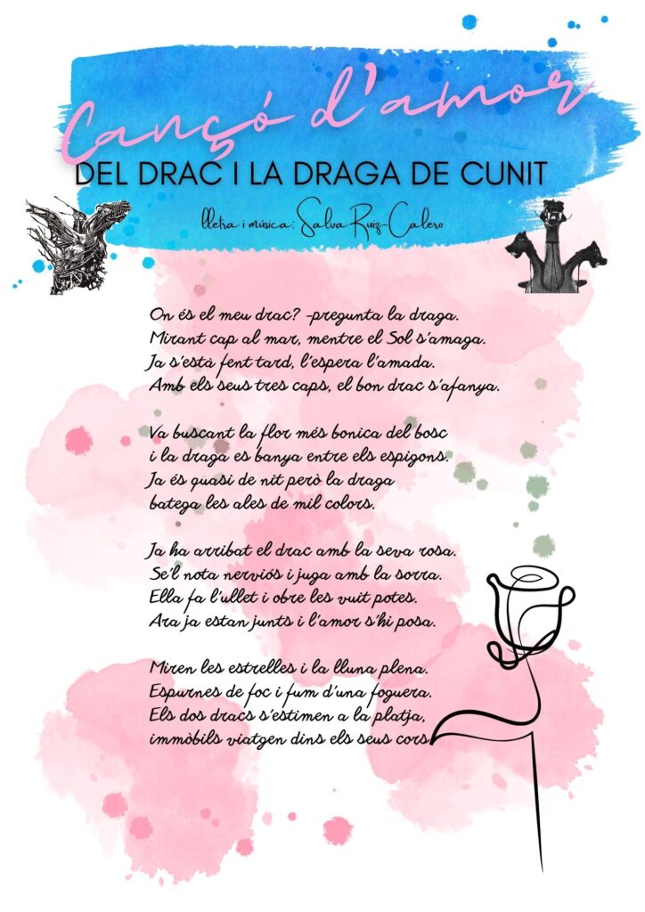 S’apropa Sant Jordi i, com ja és tradició, tornarem a cantar el nostre bonic himne, la Cançó d’amor del Drac i la Draga de Cunit, obra del nostre estimat Salva.