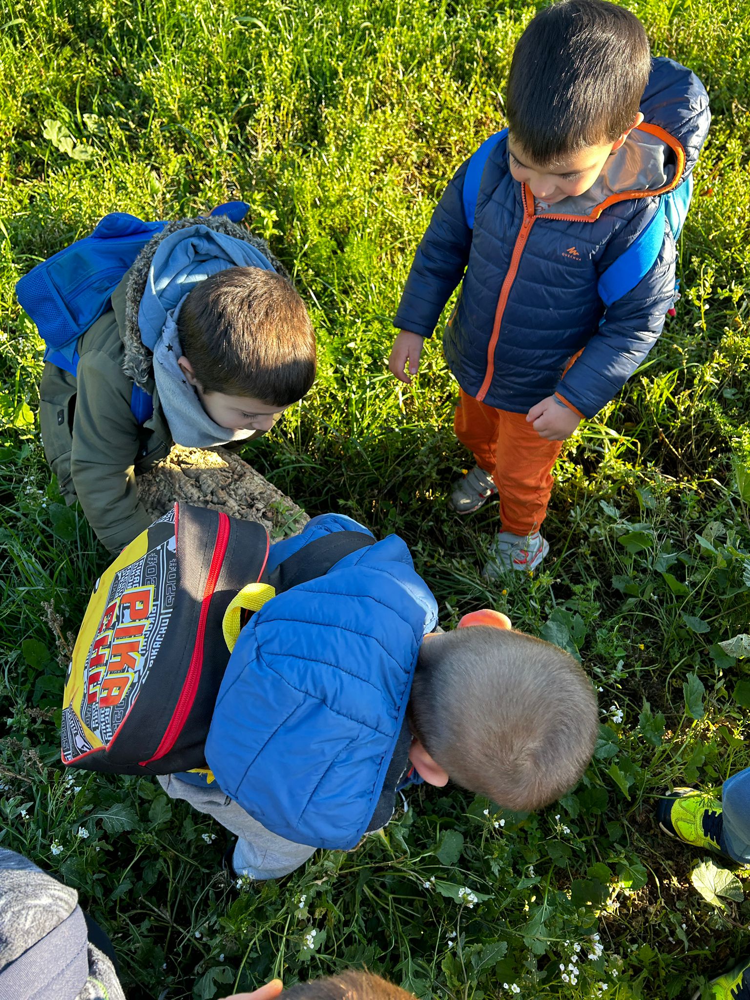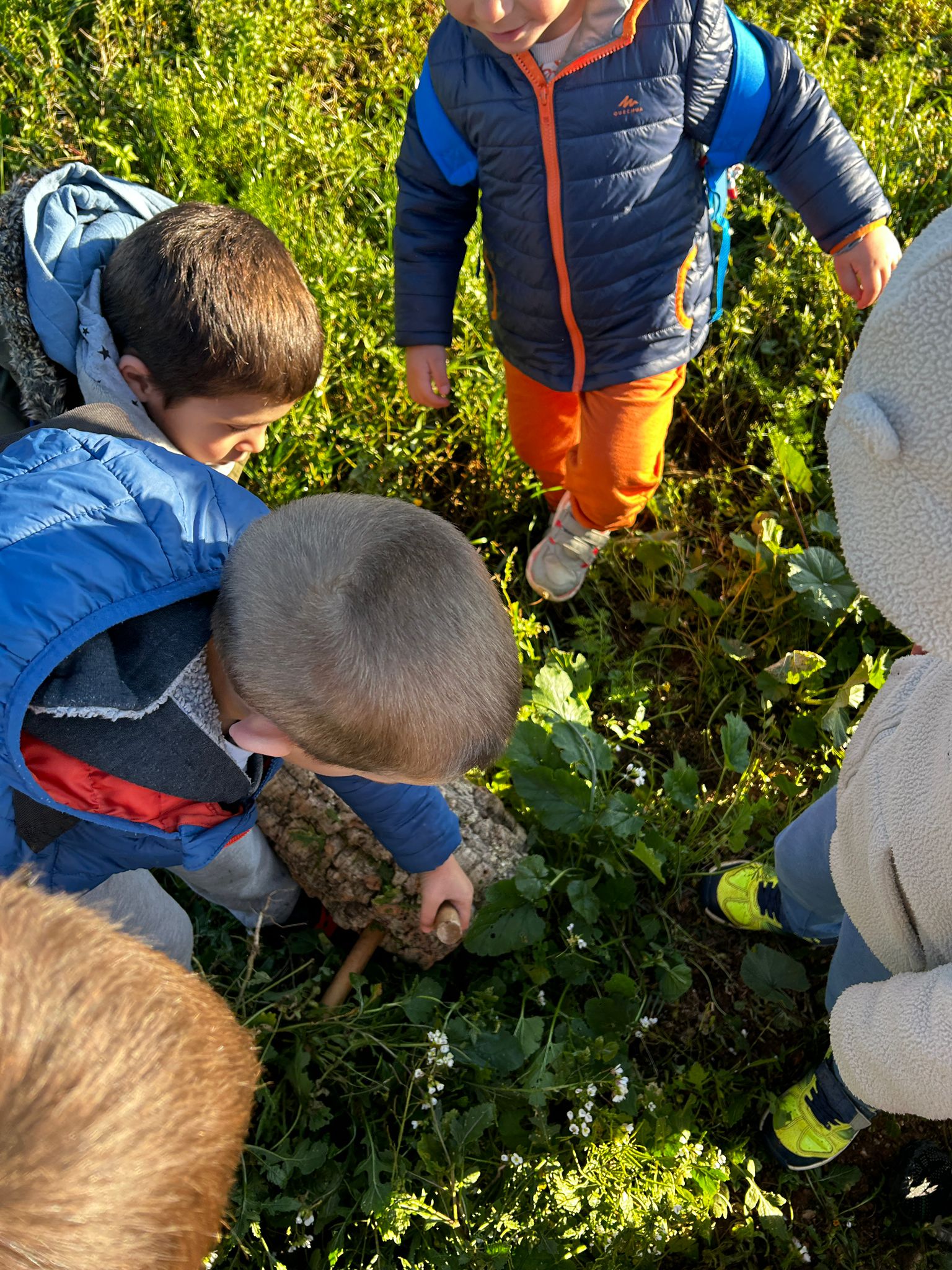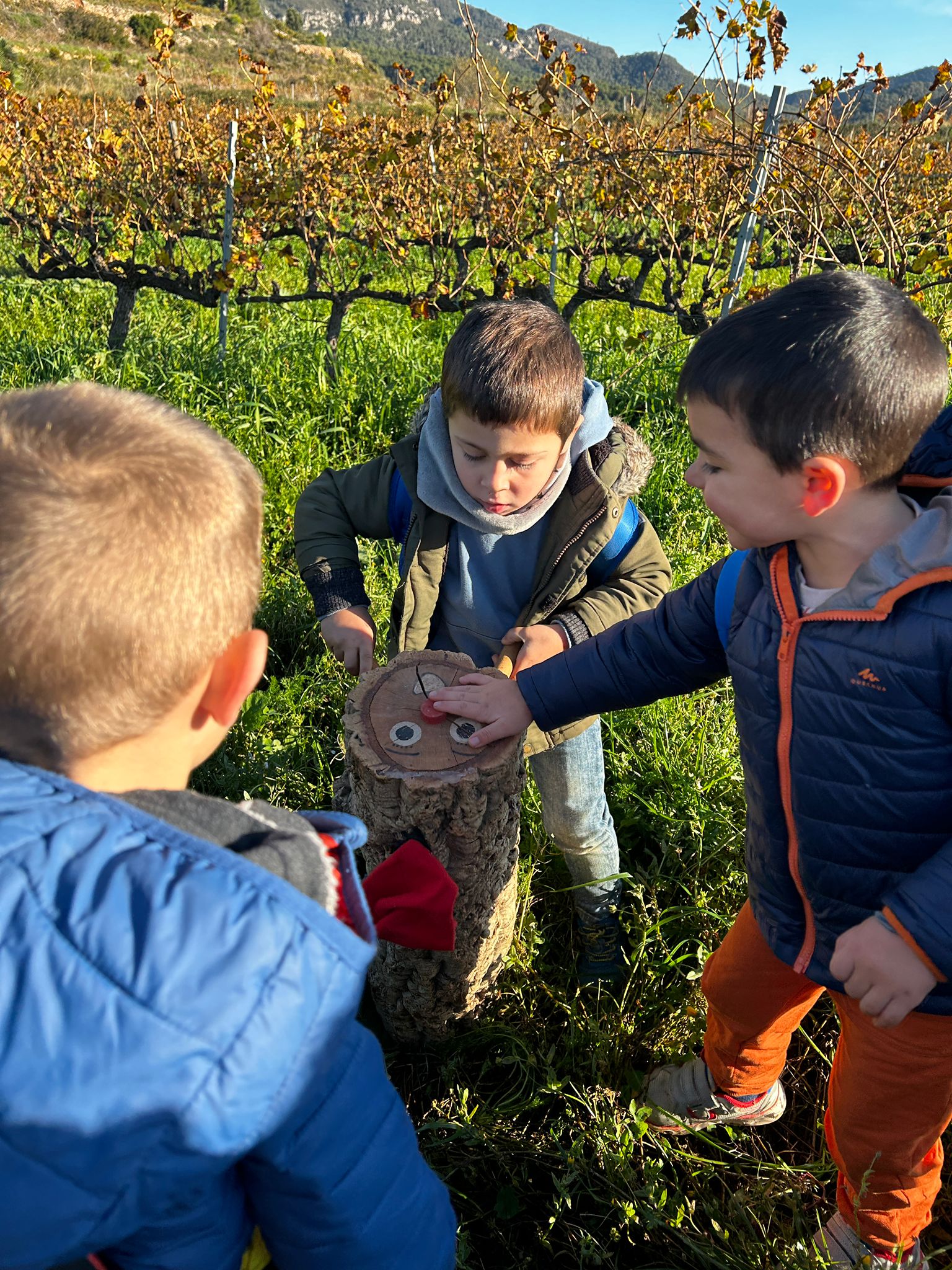 Quan hem arribat a la llar, la Rosa ens ha dit que la seva fada l’havia avisat que el Tió ens estava esperant, enmig de les vinyes de la Joncosa. I amb les indicacions de la fada i buscant, buscant…. l’hem trobat! Primer ha aparegut el del Cabirol, però seguint el camí hem trobat el de la nostra escola. Estaven molt amagats, enmig de les herbes… però el color vermell de la barretina ens ha ajudat a trobar-lo!