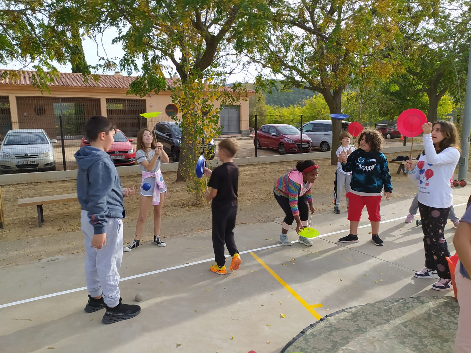 Per fer-ho hem comptat amb la companyia PASSABARRET, de Valls, que han fet un taller de circ a cadascuna de les tres comunitats de l’escola on els petits i els grans han pogut fer un tastet d’acrobàcies i equilibris.