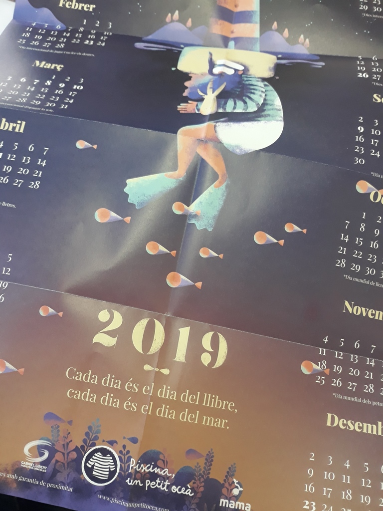 Això ens ha passat avui amb la carta que les amigues i amics de Piscina, un petit oceà ens ha fet arribar, el seu catàleg-calendari del 2019!