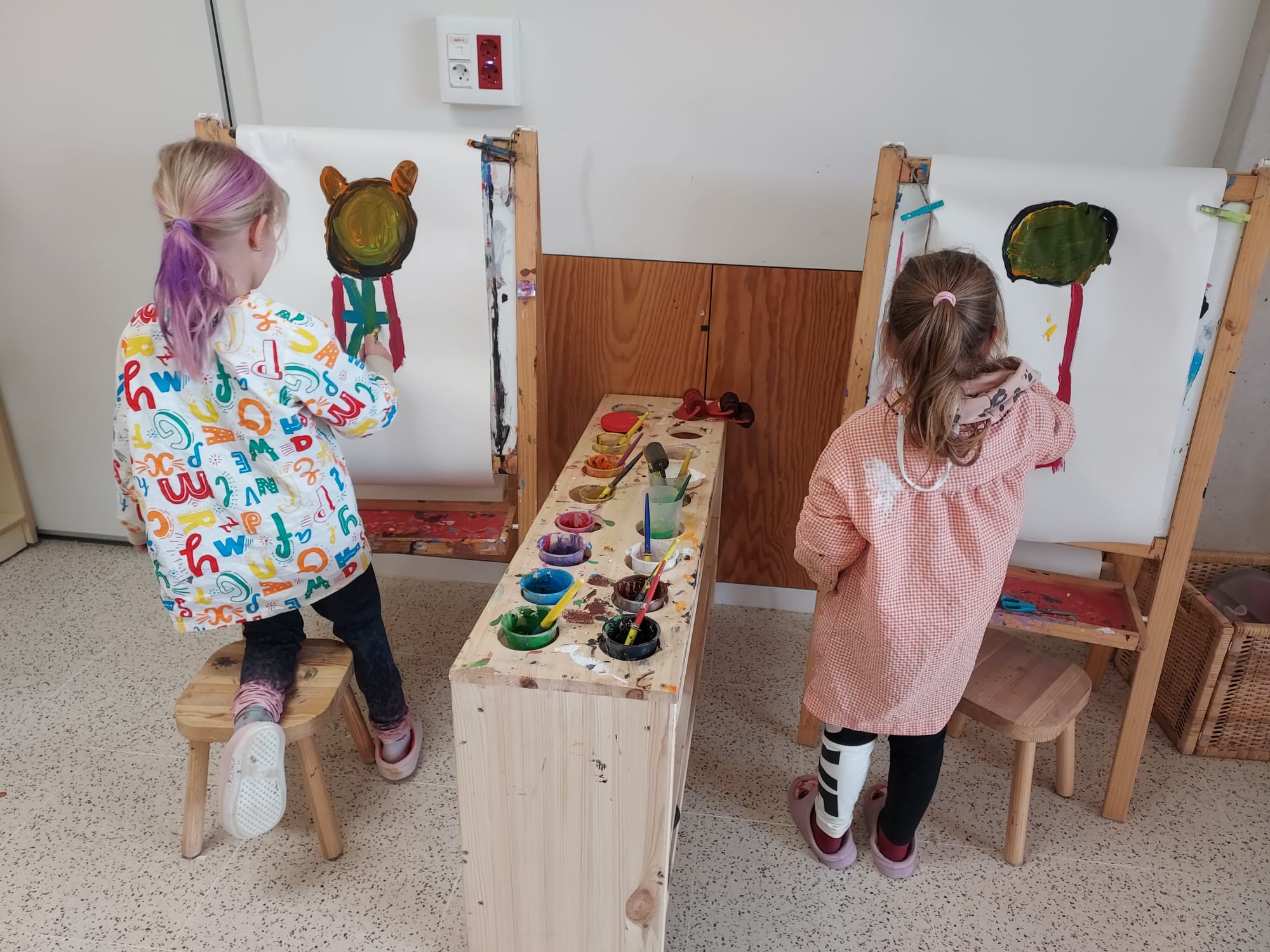 A l’ambient d’Art de la comunitat de petits, oferim l’espai de pintura lliure però ens faltava la “taula-paleta” d’Stern per acabar de tenir un espai pràctic i còmode, d’inspiració i creació dels infants.