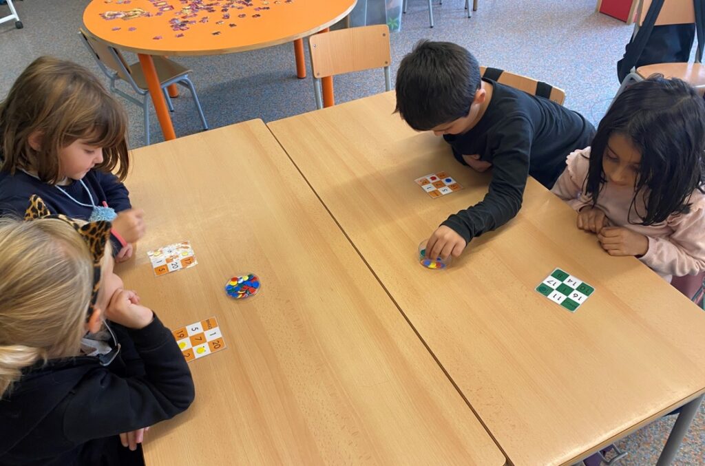 JOCS MATEMÀTICS Escola Torres Amat09/12/21 Els nens i nenes de P5 aquest primer trimestre ens hem iniciat els racons i jocs matemàtics.